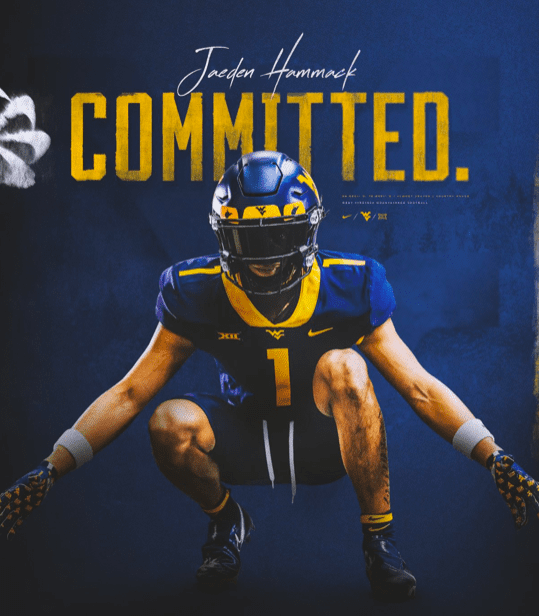 University High School’s Jaeden Hammack tweeted a graphic on Thursday afternoon to announce his decision to commit to WVU. Hammack is not only a West Virginia native, but played high school football right in Morgantown.