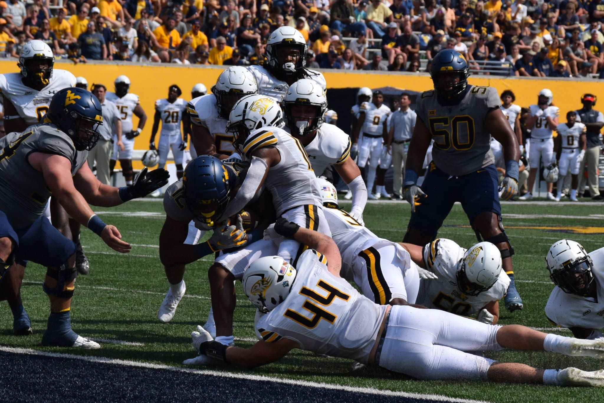 - Kaden Prather scores a touchdown versus Towson. (WVSN photo by Kelsie LeRose)