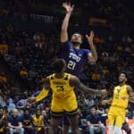 - Gabe Osabuohien elevates over TCU defenders. (WVSN photo by Kelsie LeRose)