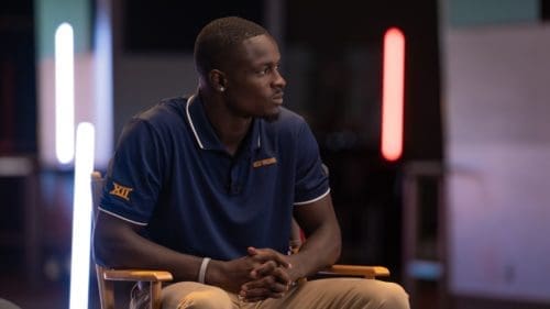 The Big 12 is now unveiling this year’s campaign with James and each other school’s individual offering their story.ย James is billed as crediting his mom for inspiring him to achieve his dreams despite external struggles. His platform for the 7th year of the conferences “Champions for Life” campaign is that he encourages kids to take care of their mental health.